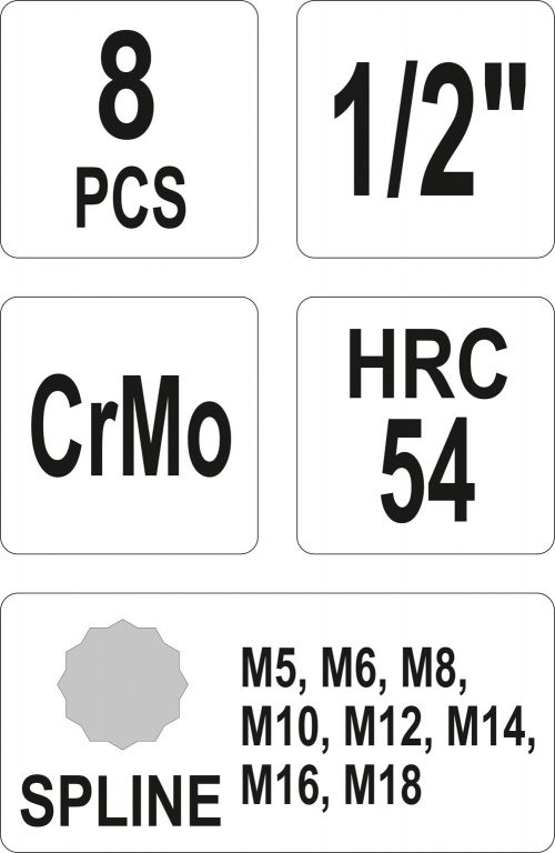 Sada nástrčných klíčů 1/2" Spline, 8 ks
