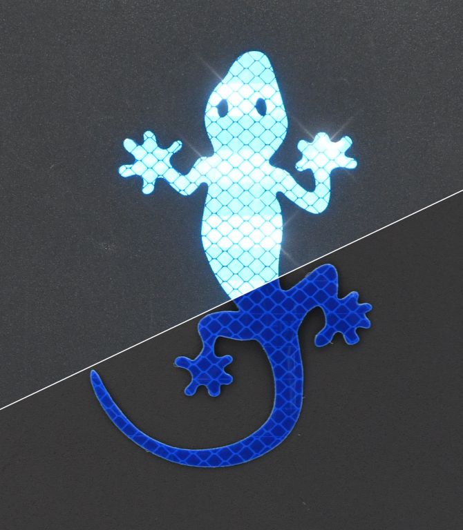 Samolepící dekor s reflexními vlastnostmi v podobě Geckona (ještěrky). Samolepka je vhodná k nalepení na očištěné neporézní povrchy. Dekor je možné nalepit i na mírně tvarované povrchy. Přilepení je snadné a rychlé.