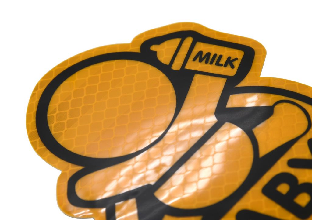 Samolepící dekor s reflexními vlastnostmi upozorňující na dítě ve vozidle.