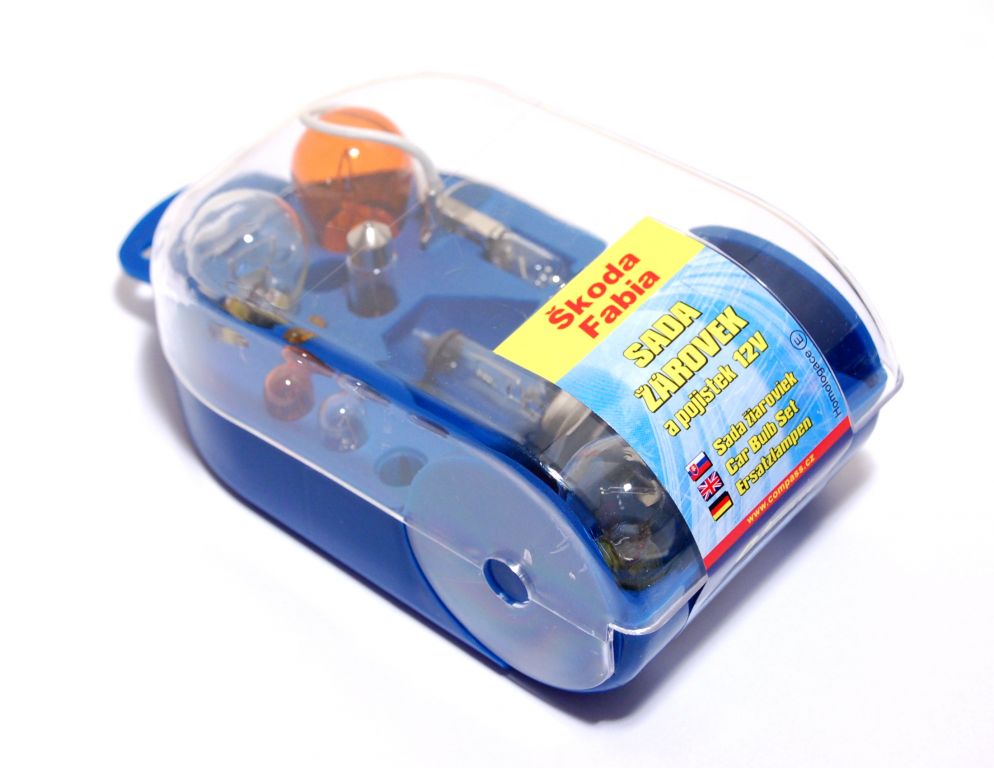 Náhradní autožárovky a pojistky na Škoda Fabia I.v plastovém servisním boxu.