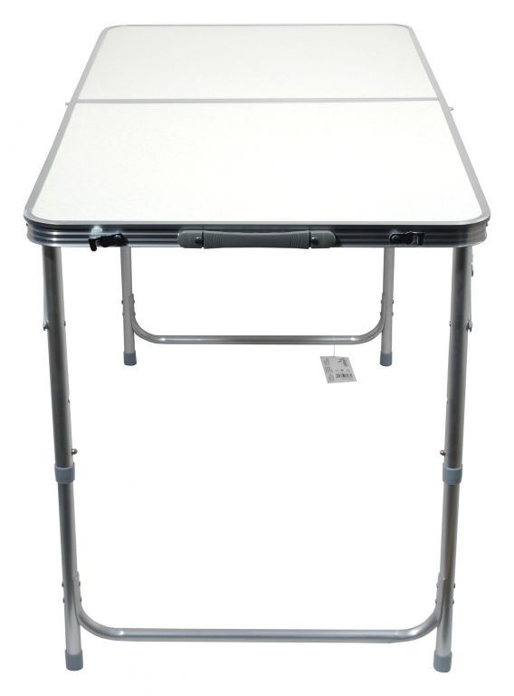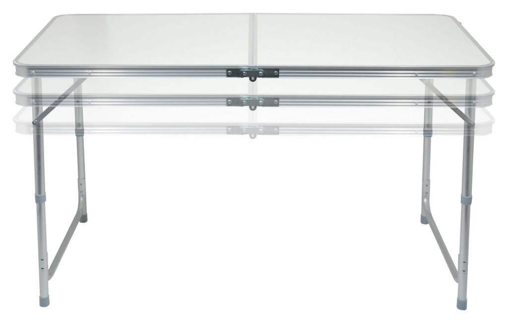 Stůl je vybaven dvěma roztahovacími nohami, které dodávají vysokou stabilitu. Nohy jsou ve svých pozicích zajištěny, takže nehrozí nechtěné složení, navíc je možné jejich teleskopické výškové nastavení ve dvou zajištěných a jedné krajní poloze. Stůl najde uplatnění jak na zahradách, tak v kempech. Plocha stolu je zhotovena z pevné dvoudílné umakartové desky, nabízející pevný podklad pro stolování. Plocha desky je snadno omyvatelná. Přiložené židle mají rozměry 36 x 27 x 36 cm a mají nosnost 90 kg.