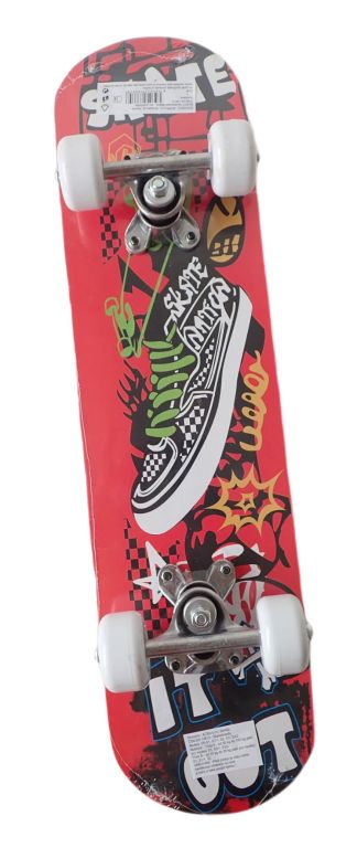 Zobrazit podrobnější popisSkateboard dětský s ALU podvozkem a dřevěnou deskou.