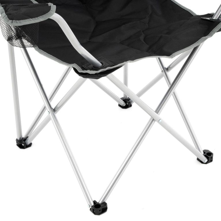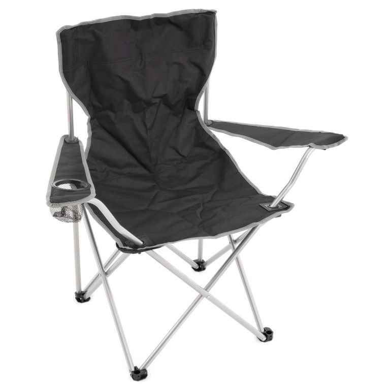Skládací kempingová židle s držákem nápojů, černá