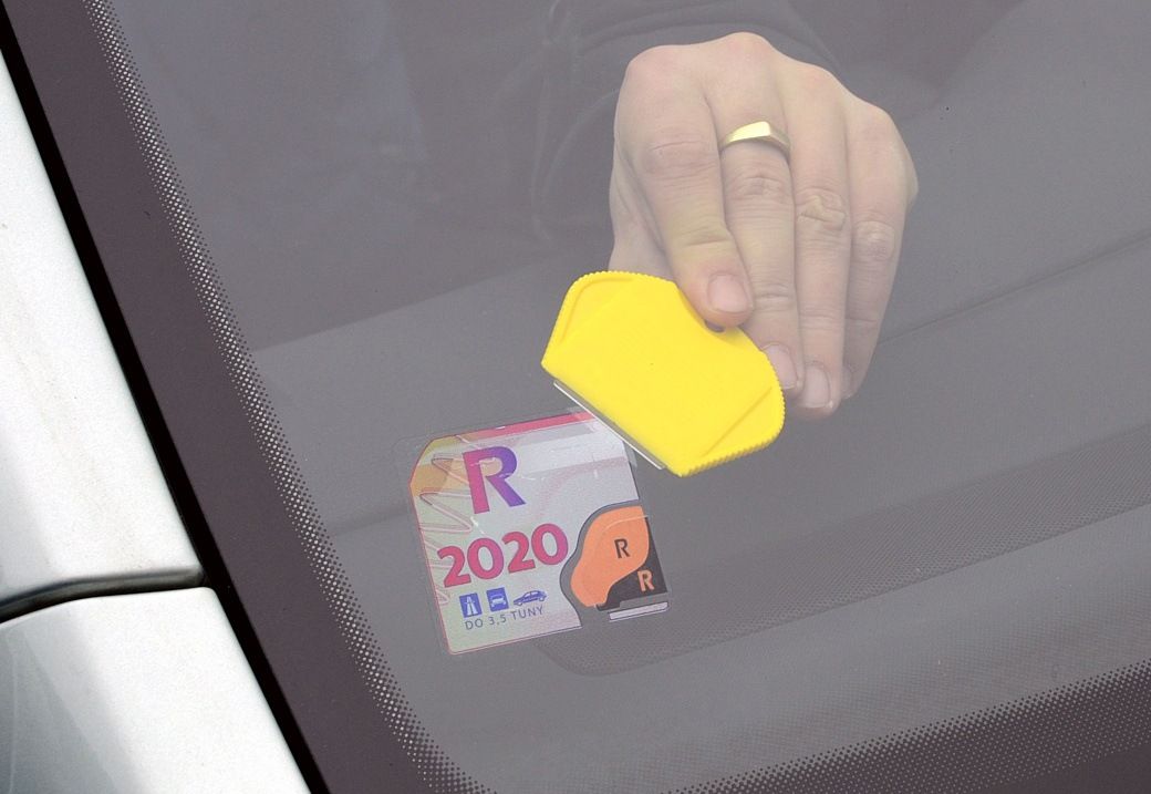 Škrabka na odstranění dálniční známky - snadno odstraní jakýkoliv druh nálepek a známek ze skla.