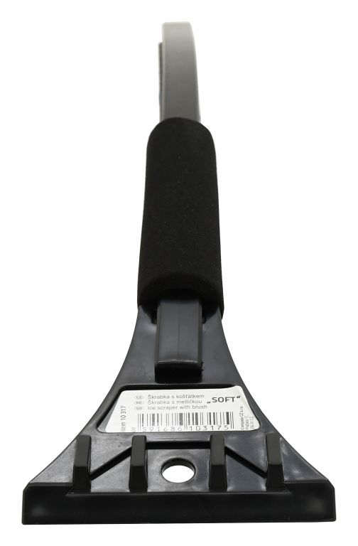 Praktická škrabka s koštátkem. Šířka škrabky a délka košťátka zabezpečí účinné a rychlé odmetání sněhu a škrábání ledu z vozidel. Tělo škrabky je zhotoveno z odolného plastu a je opatřeno pohodlnou pěnovou rukojetí pro snadnou práci.