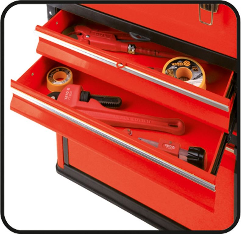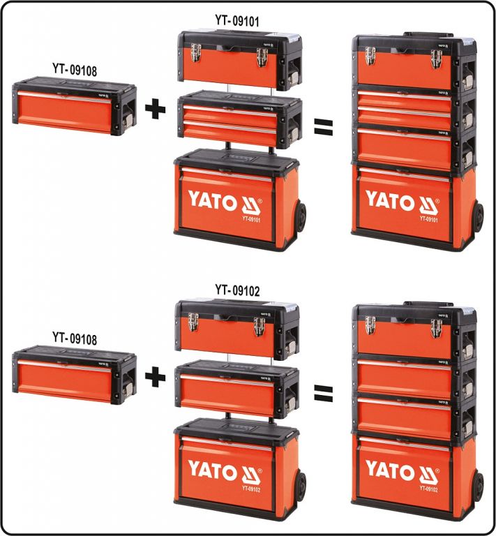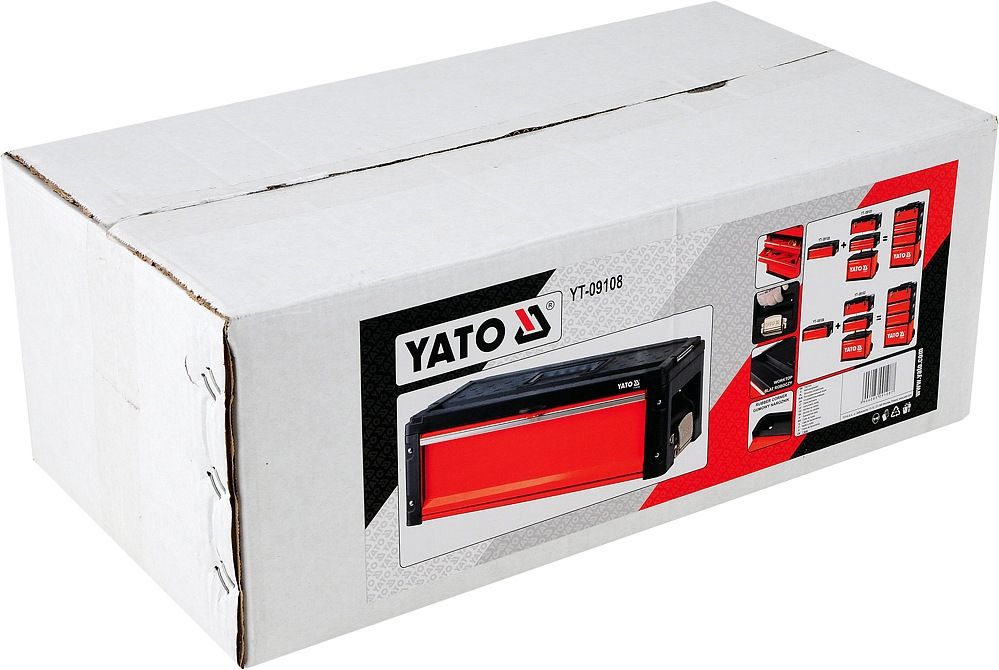 Zásuvka je usazena na kovových vodítcích opatřených kuličkovými ložisky. Modul má ploché víko, které lze použít jako pracovní desku. Kromě toho je modul vybaven pohodlnou, protiskluzovou rukojetí, postranními zvedacími rukojeťmi a plastovými rohy. Modul můžete používat samostatně, nebo použít jako doplňkový modul k sestavě modulové skříně (YT-09101, YT-09102).