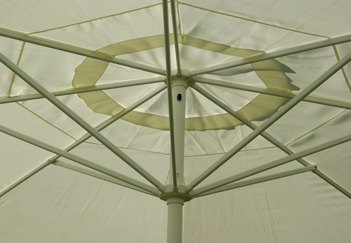 Krásný osmiboký slunečník s 8 žebry a průměrem 3,80 m, téměř 4 metry. Víko je vyrobeno z polyesteru (160 g / m²).