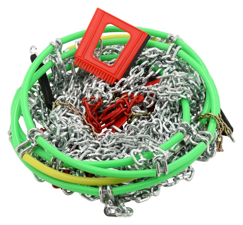 Čtyřhranné články 27 x 16 mm jsou uzpůsobeny proti protáčení řetězu, čímž výrazně zvyšují záběr kola. Síla materiálu 4,5 mm zajišťuje vysokou pevnost, odolnost a dlouhou životnost. Řetězová síť je uspořádána ve speciálním tvaru „X", zaručujícím klidnou a pohodlnou jízdu na zasněžených silnicích i na polních cestách.