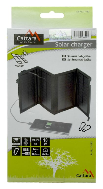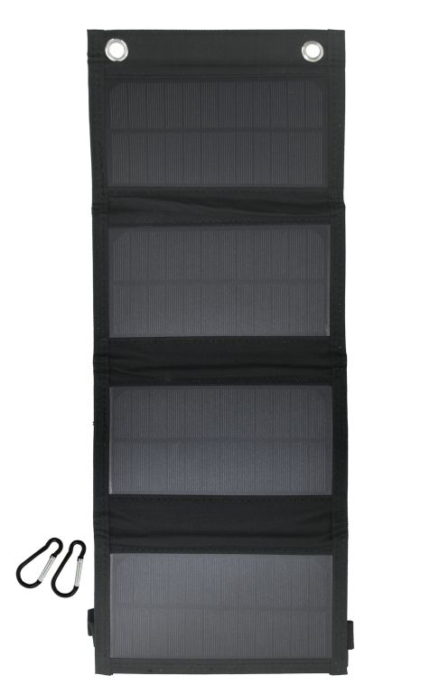 Komplet panelů stačí rozložit a umístit na slunce, případně pomocí přiloených karabinek zavěsit např. na batoh a pomocí USB kabeláže (není součástí balení) propojit nabíjecí modul panelu s nabíjeným zařízením.