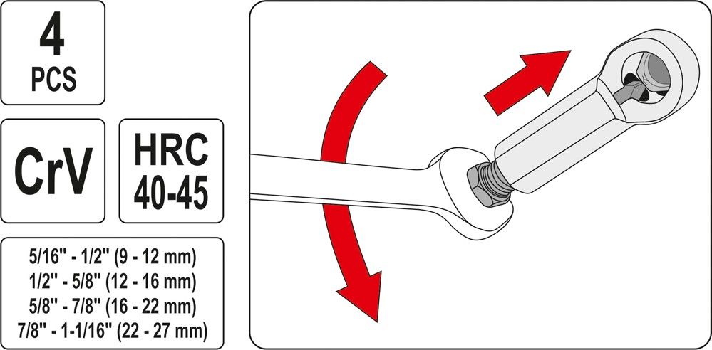 V soupravě jsou 4 odstupňované hlavice pro demontáž matic od 9 - 27 mm. Přípravky jsou zhotoveny z chrom-vanadiové, zápustkově kované, kalené a temperované oceli. Souprava pracuje na principu rozštípnutí matice šroubováním. Zakončení jednotlivých přípravků odpovídají klíčům a nástavcům 12; 14; 19; 21 mm.