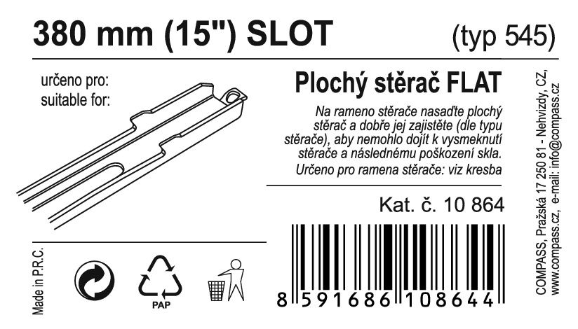 Stěrač Flat bulk (slot) 15" - 380 mm