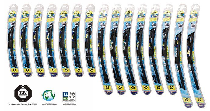 Speciální uchycení, díky kterému lze pomocí přiložených adaptérů použít tento stěrač pro řadu různých zakončení ramen stěračů. Balení jednoko kusu strače je ve speciálním "otevíracím" blisteru. Gumičku s černým grafitem lze vyměnit.
