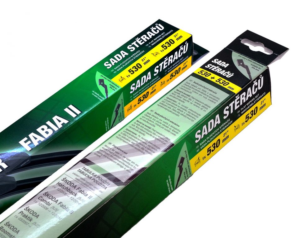 Tato sada stěračů je vhodná pro vozy Škoda FABIA II,, ale i další vozy (viz tabulka použití). Kvalitní pružný člen plochého stěrače zajišťuje stejnoměrný tlak grafitového břitu v celé jeho délce, což zamezuje rozmazávání nečistot a vytváření pruhů.