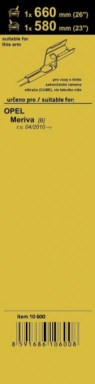 Sada dvou plochých stěračů FLAT (řidič + spolujezdec) se speciálním uchycením. Délky stěračů a systém uchycení na ramínko jsou přizpůsobeny vybraným vozům (viz tabulka použití). Vysoce kvalitní pružný člen plochého stěrače zajišťuje stejnoměrný tlak grafitového břitu v celé jeho délce.