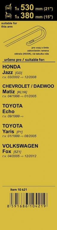 Stěrače FLAT SET (HOOK) - 530 + 380 mm