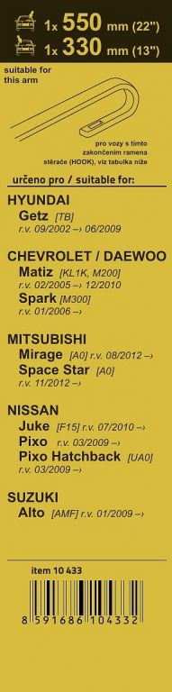 Stěrače FLAT SET (HOOK) 550 + 330 mm