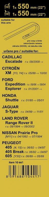 Délky stěračů a systém uchycení na ramínko jsou přizpůsobeny vybraným vozům (viz tabulka použití). Vysoce kvalitní pružný člen plochého stěrače zajišťuje stejnoměrný tlak grafitového břitu v celé jeho délce, což zamezuje rozmazávání nečistot a vytváření pruhů.