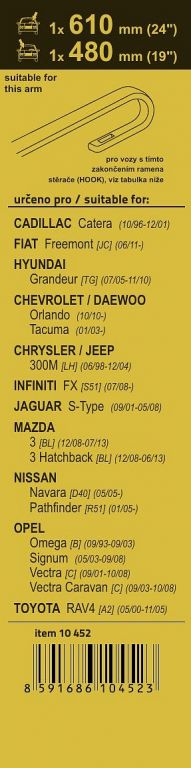 Délky stěračů a systém uchycení na ramínko jsou přizpůsobeny vybraným vozům (viz tabulka použití). Vysoce kvalitní pružný člen plochého stěrače zajišťuje stejnoměrný tlak grafitového břitu v celé jeho délce, což zamezuje rozmazávání nečistot a vytváření pruhů.