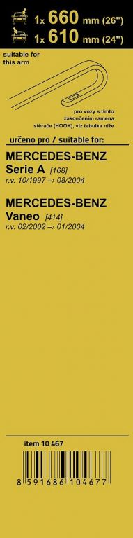 Délky stěračů a systém uchycení na ramínko jsou přizpůsobeny vybraným vozům (viz tabulka použití). Vysoce kvalitní pružný člen plochého stěrače zajišťuje stejnoměrný tlak grafitového břitu v celé jeho délce, což zamezuje rozmazávání nečistot a vytváření pruhů.