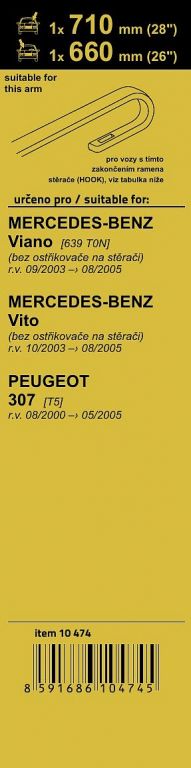Délky stěračů a systém uchycení na ramínko jsou přizpůsobeny vybraným vozům (viz tabulka použití). Vysoce kvalitní pružný člen plochého stěrače zajišťuje stejnoměrný tlak grafitového břitu v celé jeho délce, což zamezuje rozmazávání nečistot a vytváření pruhů.