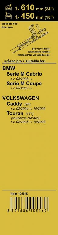 Délky stěračů a systém uchycení na ramínko jsou přizpůsobeny vybraným vozům (viz tabulka použití). Vysoce kvalitní pružný člen plochého stěrače zajišťuje stejnoměrný tlak grafitového břitu v celé jeho délce, což zamezuje rozmazávání nečistot a vytváření pruhů.