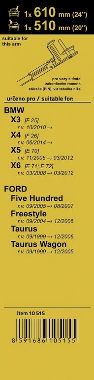 Délky stěračů a systém uchycení na ramínko jsou přizpůsobeny vybraným vozům (viz tabulka použití). Vysoce kvalitní pružný člen plochého stěrače zajišťuje stejnoměrný tlak grafitového břitu v celé jeho délce, což zamezuje rozmazávání nečistot a vytváření pruhů.