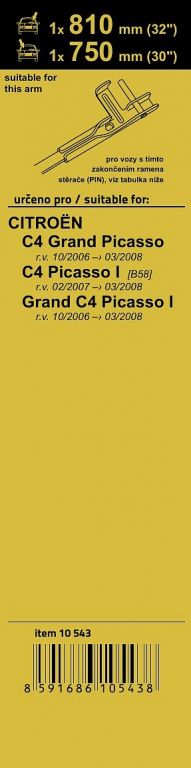 Délky stěračů a systém uchycení na ramínko jsou přizpůsobeny vybraným vozům (viz tabulka použití). Vysoce kvalitní pružný člen plochého stěrače zajišťuje stejnoměrný tlak grafitového břitu v celé jeho délce, což zamezuje rozmazávání nečistot a vytváření pruhů.