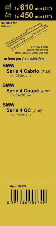 Sada dvou plochých stěračů FLAT (řidič + spolujezdec) se speciálním uchycením. Délky stěračů a systém uchycení na ramínko jsou přizpůsobeny vybraným vozům (viz tabulka použití). Vysoce kvalitní pružný člen plochého stěrače zajišťuje stejnoměrný tlak grafitového břitu v celé jeho délce.