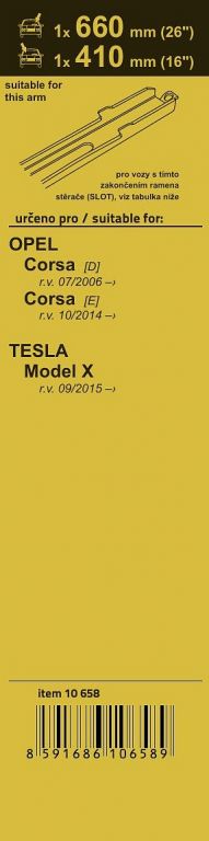 Délky stěračů a systém uchycení na ramínko jsou přizpůsobeny vybraným vozům (viz tabulka použití). Vysoce kvalitní pružný člen plochého stěrače zajišťuje stejnoměrný tlak grafitového břitu v celé jeho délce, což zamezuje rozmazávání nečistot a vytváření pruhů.