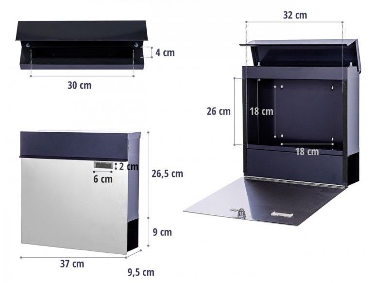 Poštovní schránka má velký otvor na dopisy, a proto je vhodná i pro velké dopisy a silnější obálky. Naše poštovní schránka je také vybavena novinovou rolí, která chrání noviny a brožury před povětrnostními vlivy. Je také vybaven štítkem a gumovými lištami, které chrání před vlhkostí a nečistotami.