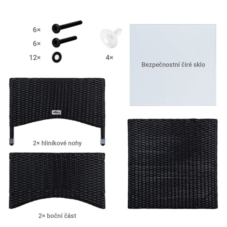STILISTA Odkládací stolek, 58 x 58 cm, polyratan, černý