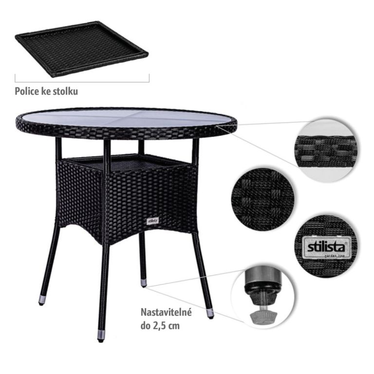 STILISTA Polyratanový stolek, 80 x 80 x 75 cm, černý