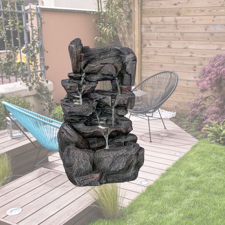 Zahradní fontána ve tvaru kamenného vodopádu promění Vaši zahradu nebo terasu v oázu pohody bez nutnosti připojení vody díky přiloženému čerpadlu.