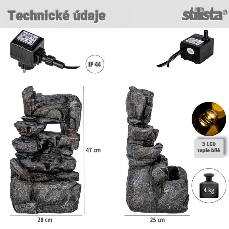 STILISTA Zahradní fontána Kamenný vodopád, 28 x 25 x 47 cm