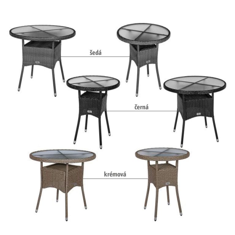 Zahradní stolek s deskou z matného skla je vyroben z polyratanu a má pevný ocelový rám s práškovým nástřikem. Robustní ocelová konstrukce je obalena do polyratanového výpletu odolného proti povětrnostním vlivům a UV záření. Spodní patro stolku pak poskytuje další odkládací prostor. Díky předmontovaným vyrovnávacím šroubům lze stolek velmi snadno vyrovnat a umístit na jakýkoliv povrch. Je vhodný pro vnitřní i venkovní použití.