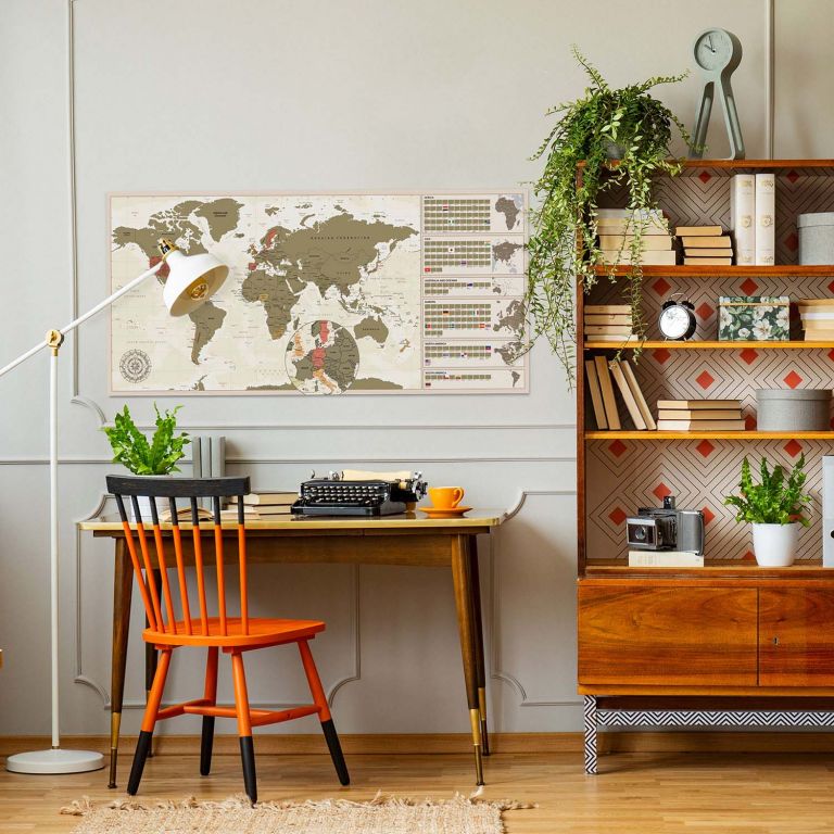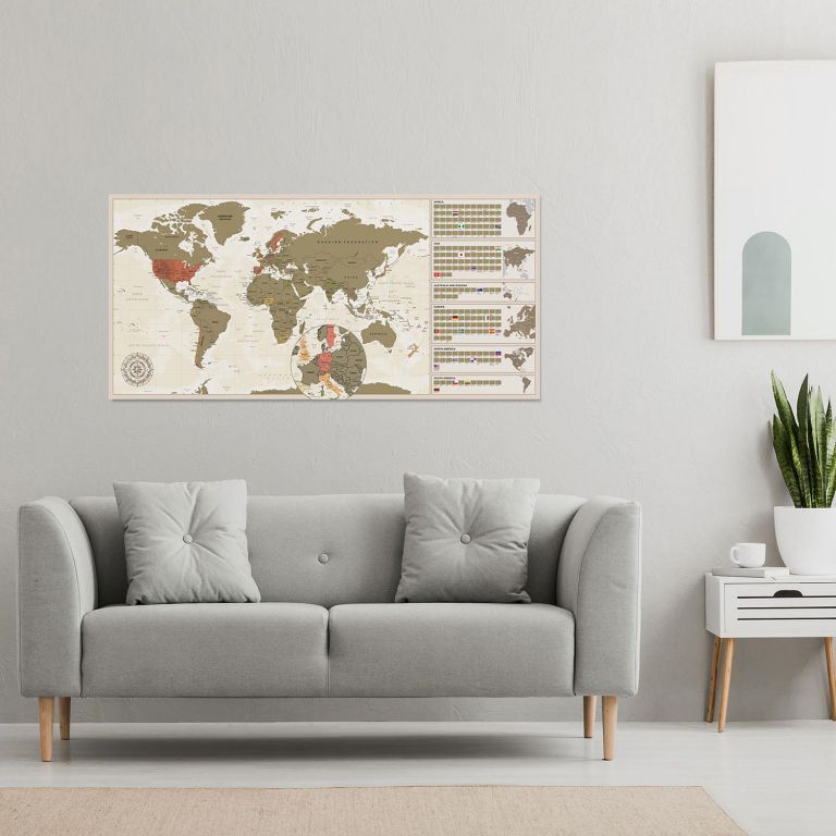 Stírací mapa světa v antik vintage stylu - 100 x 45 cm