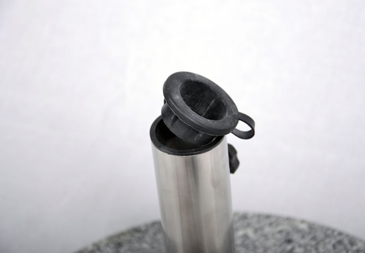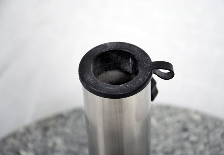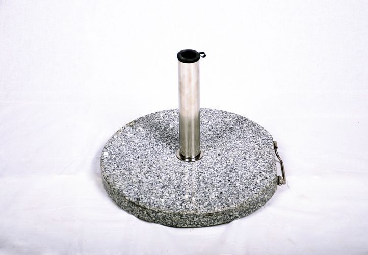 Masivní stojan na slunečníky z leštěné žuly v kombinaci s nerezovou ocelí. Zapuštěná kola na spodní části a rukojeť na boku z nerezové oceli slouží pro ulehčení přepravy. Stojan je vhodný pro slunečníky do průměru 4 metry. Dodává se s 2 plastovými objímkami s vnitřním průměrem 39 a 50 mm pro uchycení slunečníku. Pomocí dvou šroubů se tyč uchytí do stojanu.