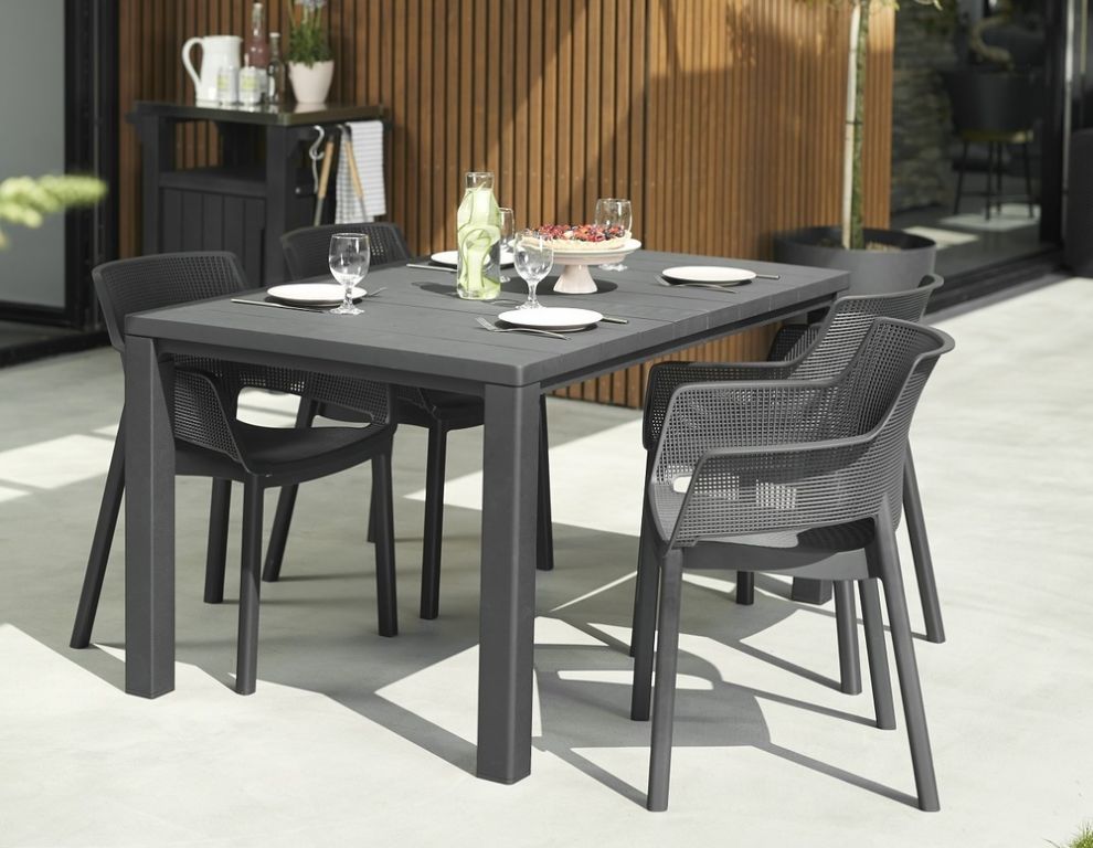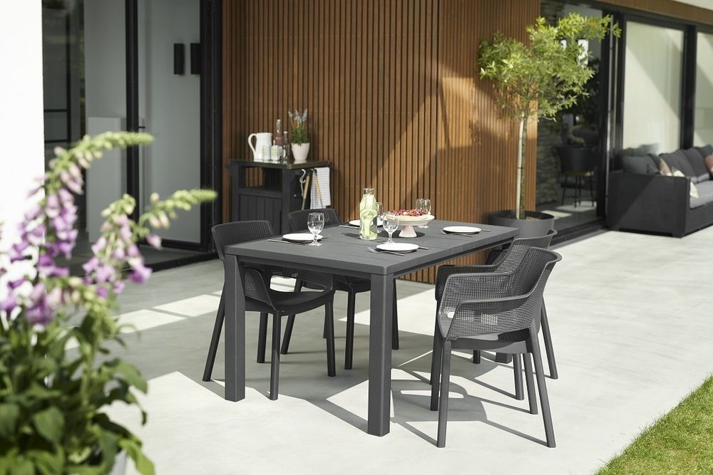 Plastový stůl od firmy KETER má neokoukaný moderní vzhled. Tento typ stolu je vhodný k usazení až 6 osob. Stůl je odolný v nepřízni počasí i UV záření. Velkou předností tohoto výrobku je snadná údržba.