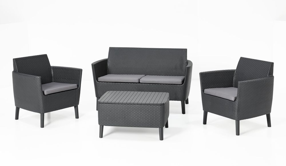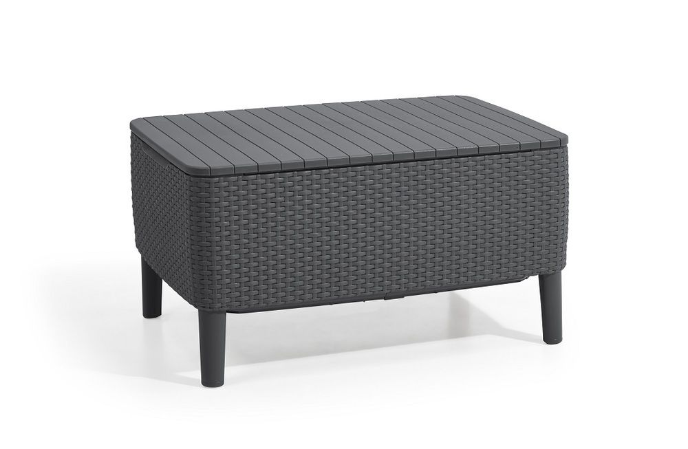 Jedná se o elegantní stůl v imitaci ratanu, který navíc slouží jako úložný box. Vhodný k doplnění jakéhokoliv setu tohoto druhu.