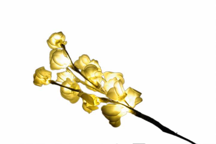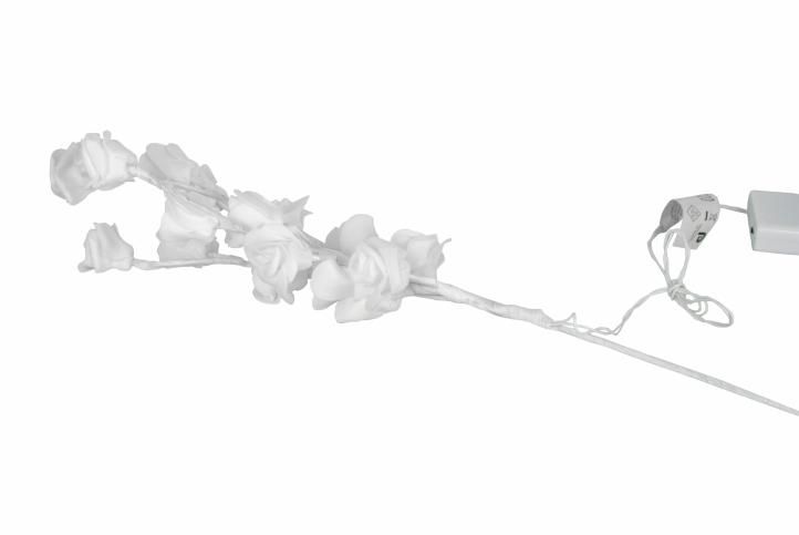Elegantní větvička s precizně zpracovanými růžičkami. Díky 16 LED diodám, které svítí teple bílým světlem, přinese tato dekorace do Vašeho domova překrásné kouzlo. Větvička se dělí na další 4 části. Díky napájení na baterie nebudete muset řešit přístup k el. zásuvce.
