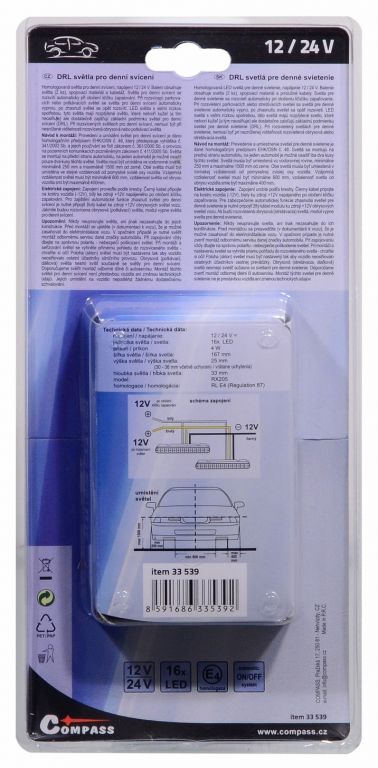 Homologovaná světla pro denní svícení se rozsvítí automaticky při otočení klíčku zapalování. Balení obsahuje sadu dvou kusů.