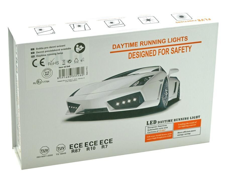Každé světlo je osazeno 4x vysoce svítivou HI POWER LED diodou. Při rozsvícení parkovacích nebo potkávacích světel se světla pro denní svícení automaticky vypnou a po zhasnutí světel se opět rozsvítí. LED světla s velmi nízkou spotřebou, tyto světla mají rozptýlené světlo, které netvoří kužel (a tím neoslňuje) ale dostatečně zajišťují základní podmínku světel pro denní svícení (DRL). Při rozsvícených světlech pro denní svícení, nemusí být při nesnížené viditelnosti rozsvícená obrysová nebo potkávací světla. Montáž těchto světel pro denní svícení není přestavbou vozidla ani změnou technických údajů. Jejich umístění na vozidlo nepodléhá žádnému dodatečnému schvalování.
