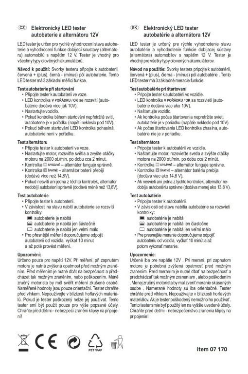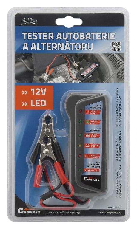 LED tester je určen pro rychlé vyhodnocení stavu autobaterie a vyhodnocení funkce dobíjecí soustavy (alternátoru) automobilů s napětím 12 V. Tester je vhodný pro všechny typy olověných akumulátorů.