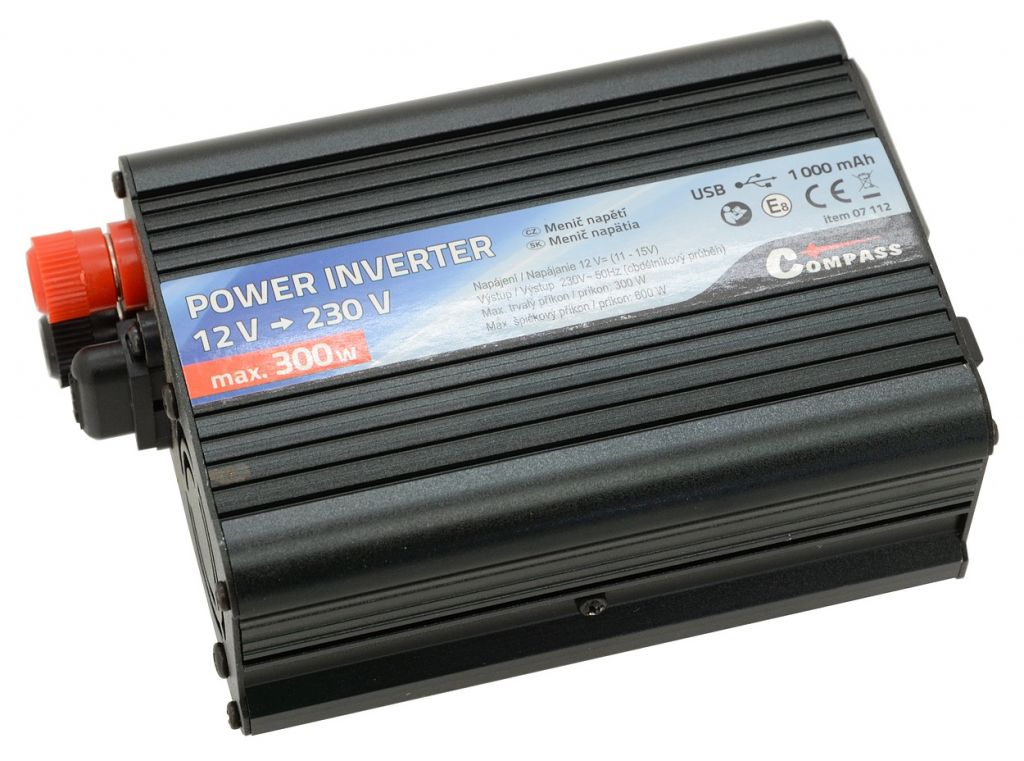 Výkonný měnič, určený pro univerzální použití, kdy je potřeba připojit síťové spotřebiče určené pro 230V/50Hz v místech s rozvodem 12 V=.