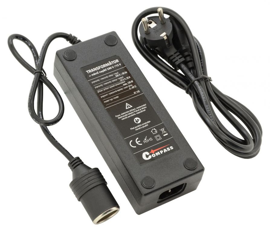 Tento vysoce výkonný 10 A měnič (transformátor s usměrňovačem) je určený pro univerzální použití, kdy je potřeba připojit zařízení o výkonu až 120 W s napájením pomocí zástrčky autozapalovače 12 V= k síti s napětím 230 V.