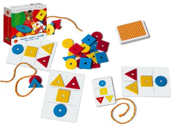 Atraktivní zábavná naučná hra s navlékáním na provázky. Obsahuje 2 zajímavé varianty hry.Učí barvy a tvary, rozvíjí paměť, postřeh a koncentraci. Pro 2-4 hráče od 5 let.