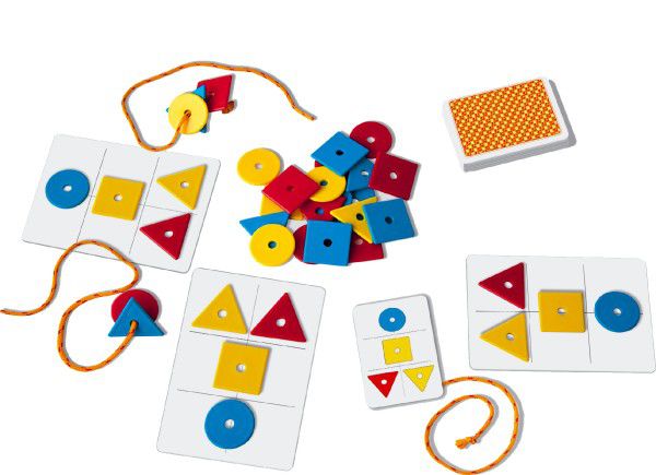 Atraktivní zábavná naučná hra s navlékáním na provázky. Obsahuje 2 zajímavé varian...