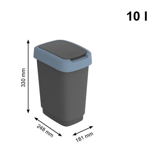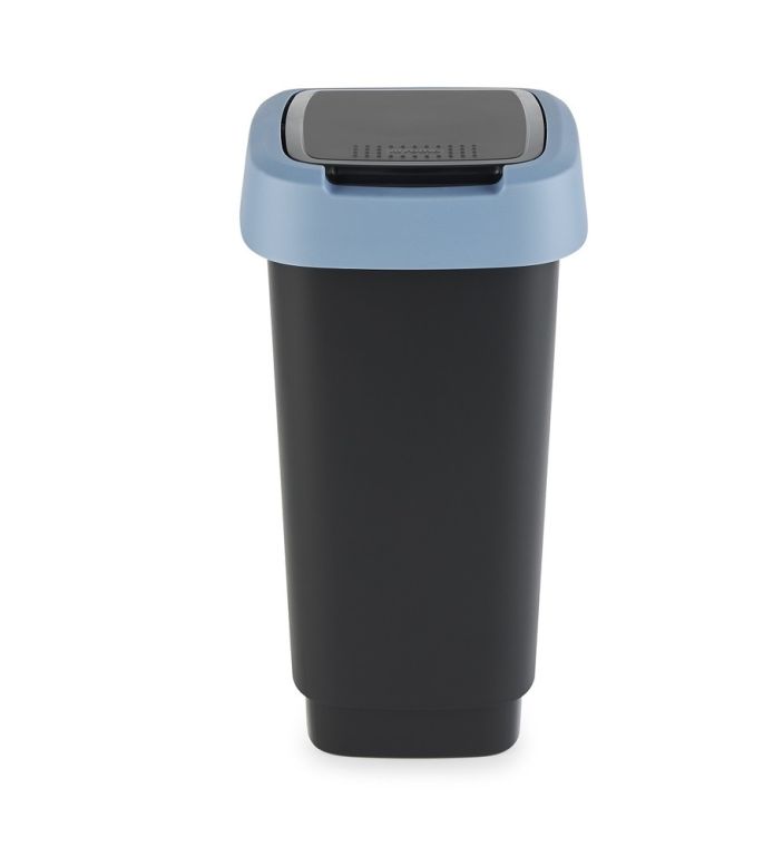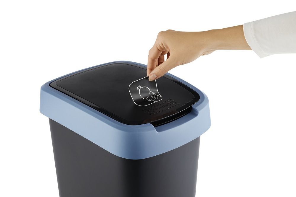 Plastový odpadkový koš s odklápěcím víkem. Dva způsoby otevření koše. Kvalitní materiál a provedení od švýcarské značky Rotho.