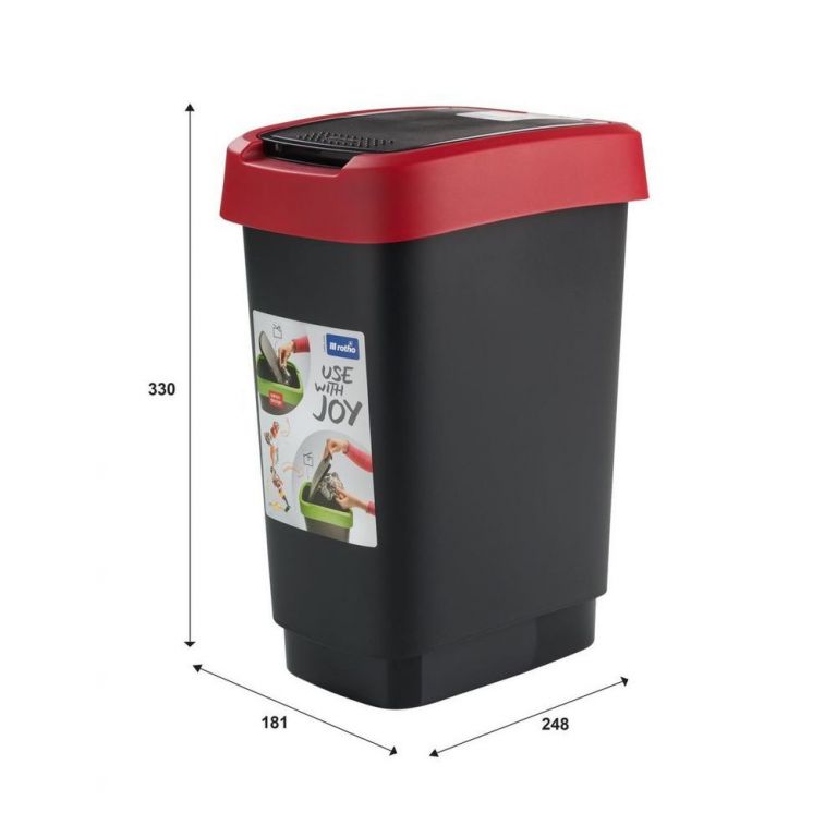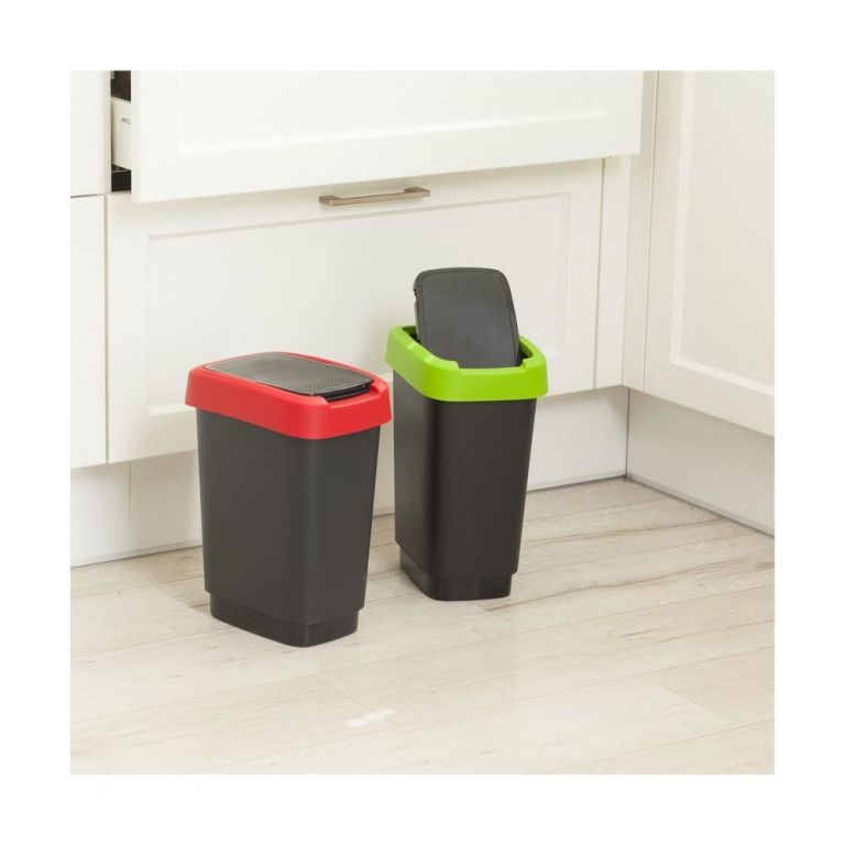 Plastový odpadkový koš s odklápěcím víkem a dvěma způsoby otevření koše s objemem 10 litrů. Kvalitní materiál a provedení od švýcarské značky Rotho.
