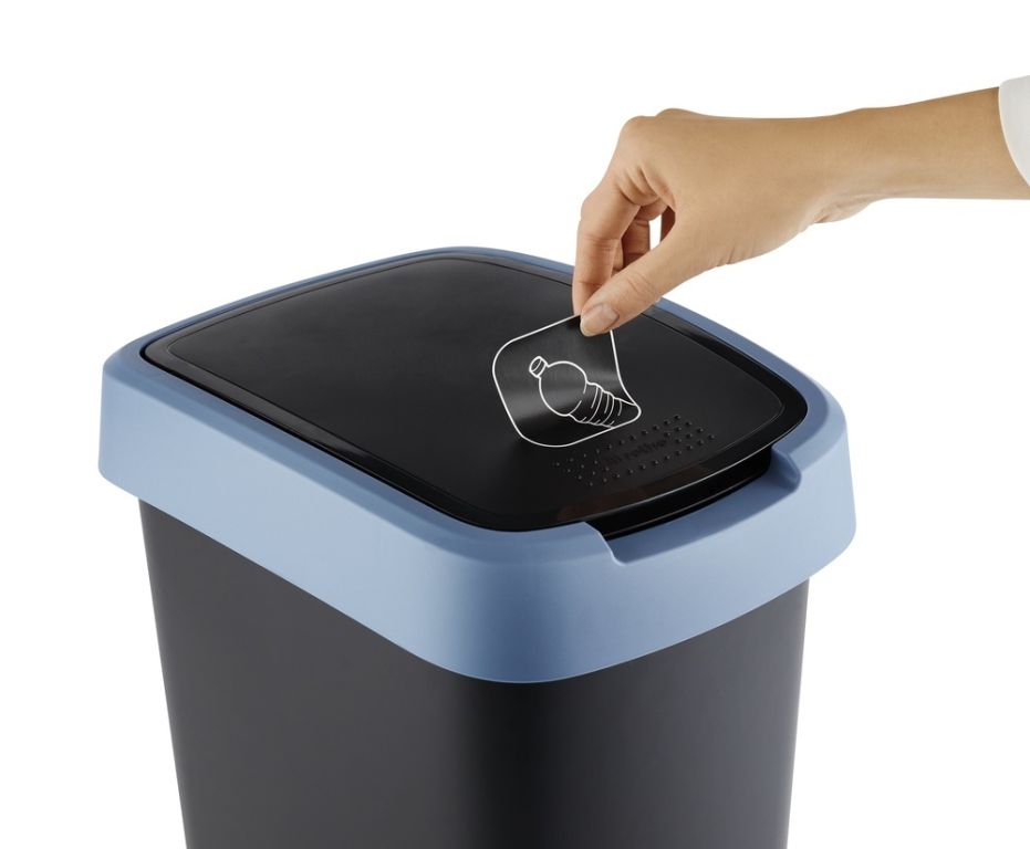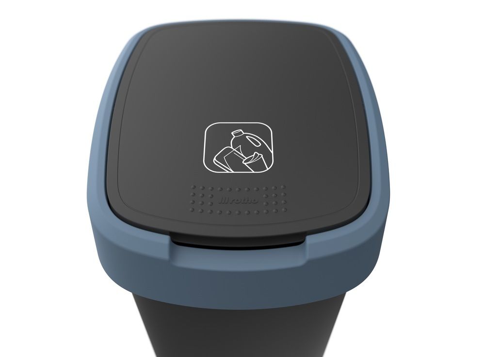 Plastový odpadkový koš s odklápěcím víkem. Dva způsoby otevření koše. Kvalitní materiál a provedení od švýcarské značky Rotho.